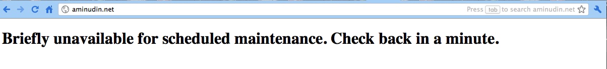 sebenernya simpel sekali untuk mencari jalan keluar dari permasalahan tersebut, yaitu anda tinggal masuk ke home directory website dan delete file yang bernama .maintenance maka coba anda refresh website anda, akan kembali seperti semula, seperti yang telah saya lakukan barusan setelah saya coba update ekh ga bisa 😀 .. yaitu dengan sedikit langkan seperti ini: