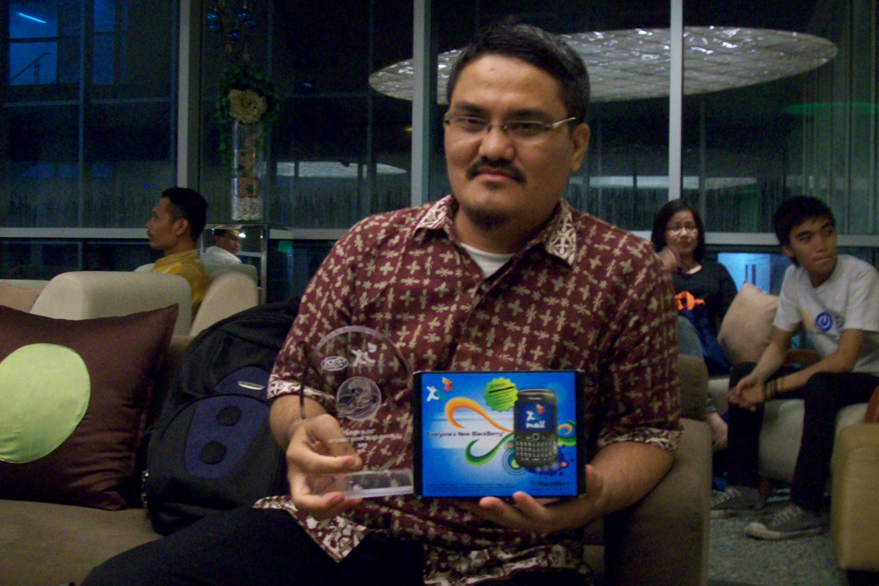 dari ke-empat nominator ini maka terciptalah 1 orang yang berhak menjadi “Super Blog ISBA 2009” (blog terbaik di tahun 2009) yaitu bapak Jonru dengan nama blognya http://www.jonru.net, selamat untuk bapa jonru, karena mendapatkan hadiah satu bongkah gemini :), sempat terucap kata beliau kalau dengan ikutan dan menjadi Super Blog ISBA 2009 ini dia akhirnya bisa menjawab pertanyaan yang susah untuk dia jawab dari teman-temannya, apa tuh pertanyaannya? simpel aja yaitu “Berapa PIN BBnya pak?”, dengan mendapatkan sebuah blackberry gemini dari ISBA 2009 ini dia akhirnya bisa jawab semua pertanyaan yang menanyakan PIN BB :D, Berikut sedikit foto yang bisa di publish disini: